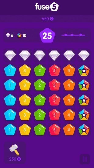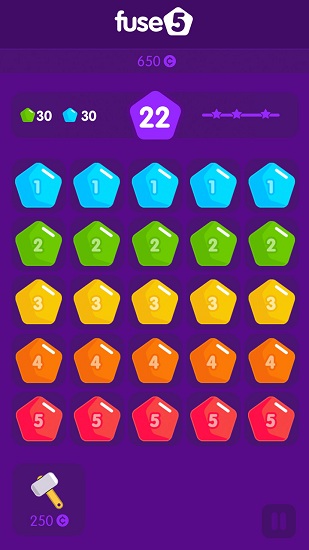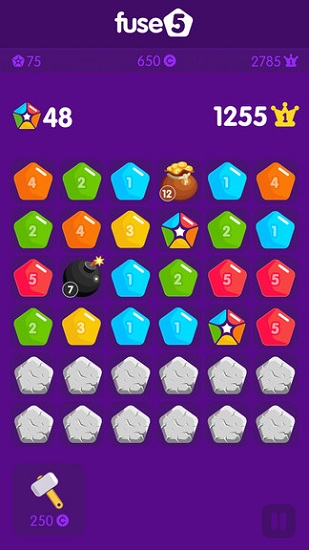 融合5是一款特别适合在无聊的时候打发时间玩的休闲消除手游,跟其它传统的消除手游不一样的是,这款游戏并不是三消,而是不一样的两消,通过不同的方式进行组合消除,融合多次之后五边形方快将会变成一个独特的方块。游戏操作简单没有上手难度,适合所有年龄段的玩家。