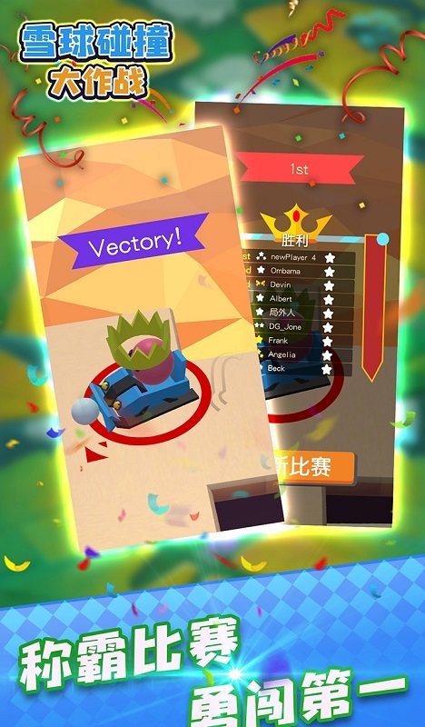c、轻松有趣的碰撞玩法,打球碰小球,小球不断收集能量变成大球,享受不一样的雪仗玩法。