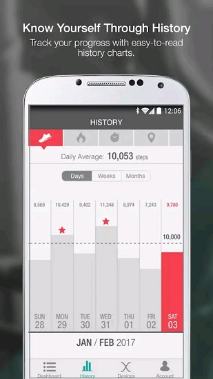 通过易于阅读的历史记录图表同步您的每日统计数据并了解您的进度。随着时间的推移,了解健身和睡眠趋