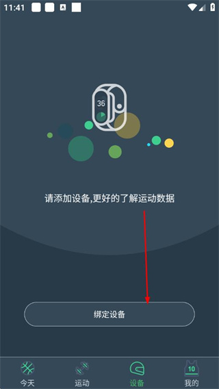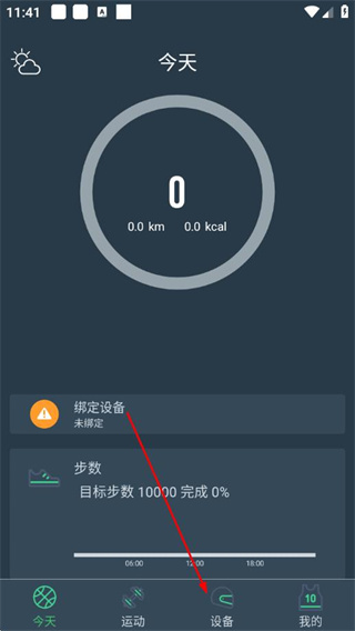 1、打开dayband手环对应的APP,点击底部设备选项,进入设备页面。