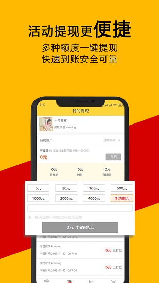 需要用钱的时候可以在这里随时的提现,提现能够快速达到账户;