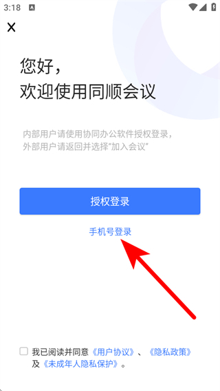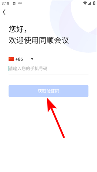 4、输入手机号获取验证码,即可完成同顺会议账号登录操作。