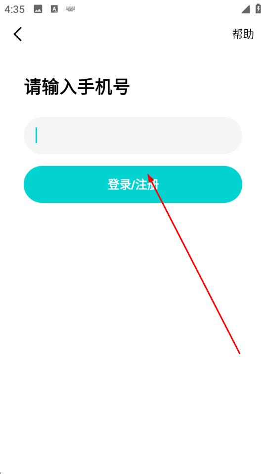 1、打开应用,在登录页点击手机登录/注册按钮,进入手机号填写界面。