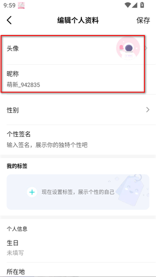 4、在编辑个人资料界面中,可对头像、昵称等信息进行编辑,完善个人资料后即可开启音觅星球的社交互动等玩法。