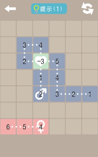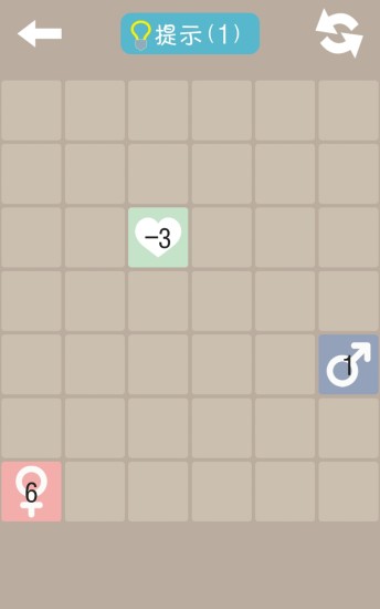 数字邂逅是一款休闲益智类手机游戏,游戏界面简洁,操作简单,拖动女生符号格子数字会减一,男生格子数字会加一,当经过心形格子时会自动运算,喜爱的朋友赶快下载体验吧!
