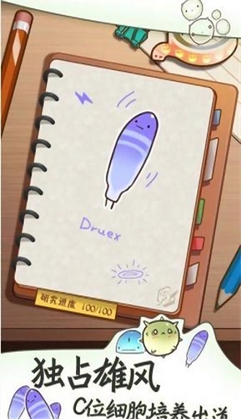 b.画风整体是卡通的,玩家需要从最开始的时候能培养很多的不同的类型的细胞慢慢的看着他们变化。