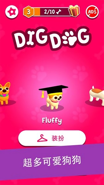 2、游戏趣味的狗狗养成玩法模式,玩家可以自由的收集各种更可爱的狗狗并悉心的照料它们;