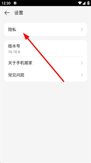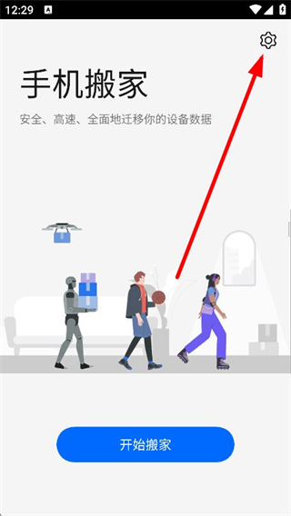 1、打开OPPO手机搬家APP,点击右上角设置图标。