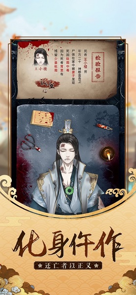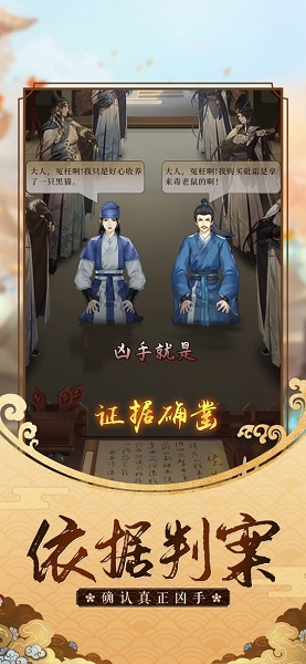 3、升堂断案,出示证据令真凶认罪伏法,惩奸除恶,还百姓一个公道!