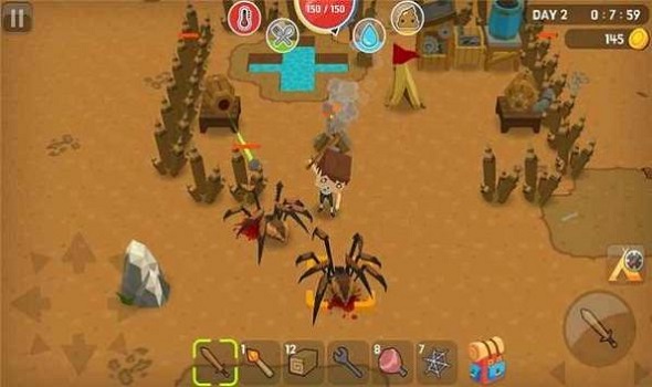 c、制作工具和武器,帮助你在野外探险,武器可以帮助你对抗可怕的野兽。