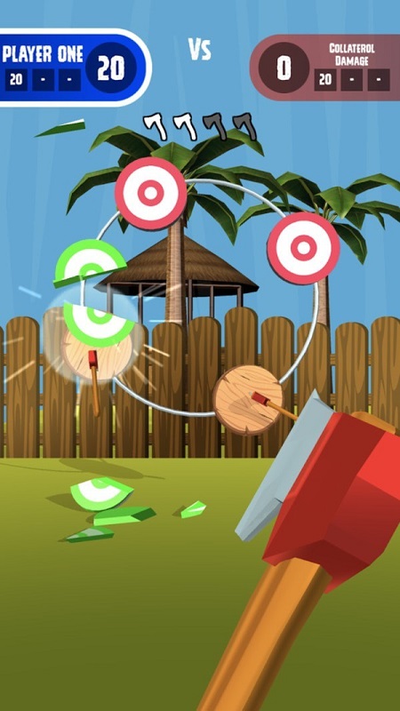 3.在游戏中,您只需轻击屏幕即可摆动斧头,并用超锋利的斧头砸碎目标。 用掷斧子游戏击中目标。