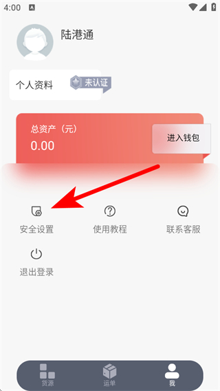 1、进入陆港通我的页面后,点击安全设置,进入安全设置界面。