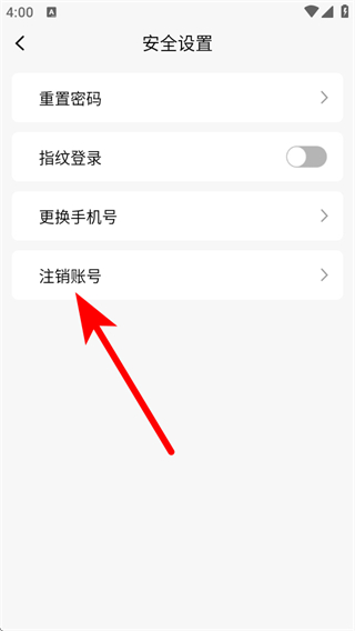 2、在安全设置界面,点击注销账号,弹出账号注销提示框。