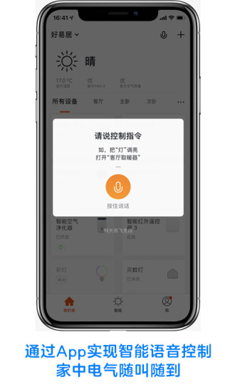 通过手机App对家电进行语音控制,让家中用电设备随时听令。