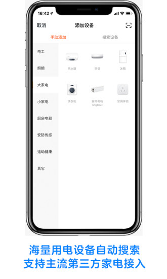快速搜索并添加家中的智能设备,支持市面上主流第三方家用电器连接,还可以进行空间与房间管理,为您的所有生活空间实现智能化。