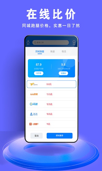 优闪速达聚合平台,整合市场外卖和跑腿平台,是外卖平台和跑腿平台的中间服务商。创造更智能,更舒适的生活,为广大外卖商家提供更方便的,更智能平台!主要服务于微电商、同城电商以及其他生活服务类配送需求,为线上平台、实体商户、个人提供高效、便捷、省钱、贴心的同城配送服务。