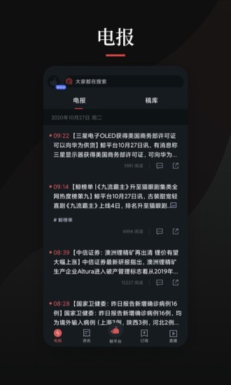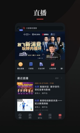 鲸平台app给用户带来丰富的自选,丰富的新闻资讯内容给用户全平台的服务体验,特色的直播,可视化的搜索操作,以及相关的财经分析讲解让你更好的了解,有需要的用户就来下载试试吧!