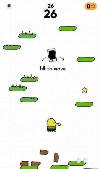 3、晃动手机上来操纵人物角色的弹跳和挪动方位,不断往上弹跳。