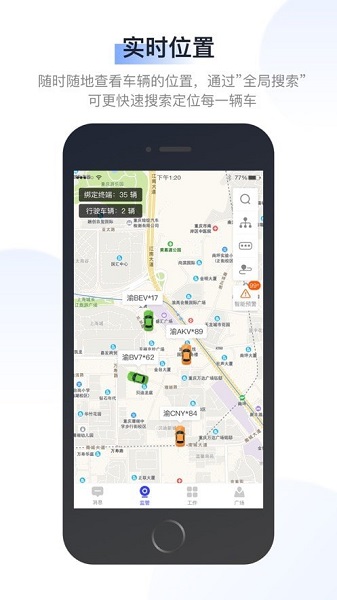 -实时位置,随时随地查看企业管理车辆的实时位置,通过“全局搜索”更可快速搜索定位每一辆车。