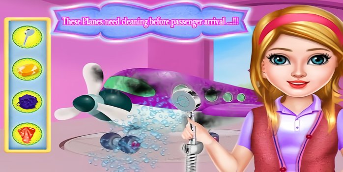 3.作为一名机场经理是专业的工作职务。有一个疯狂的飞机洗,洗刷,淋浴和毛巾,以消除所有的混乱,使其清洁。你可以玩这个免费的游戏作为一个清洁游戏