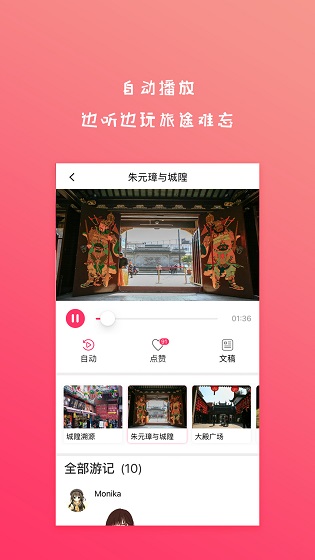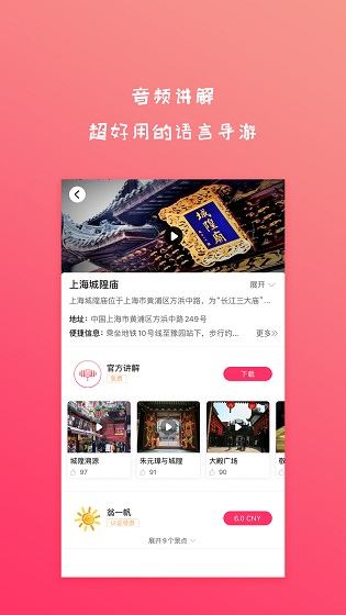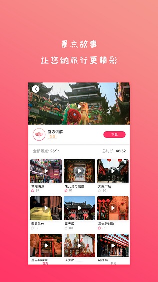 2、语音讲解,让你在旅行中了解到每个景区背后的故事,让旅行变得更加生动;