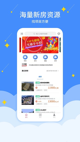 贝信圈app是一款简单方便的房产服务平台。在这里,您可以以不同的身份登录,软件会为您打造不同的办公服务,您既可以作为开发商或公司发布房源资料,也可以作为经纪人查询房源,为您的客户提供优质的新房资料。想要轻松进行房产办公的朋友快来下载吧!