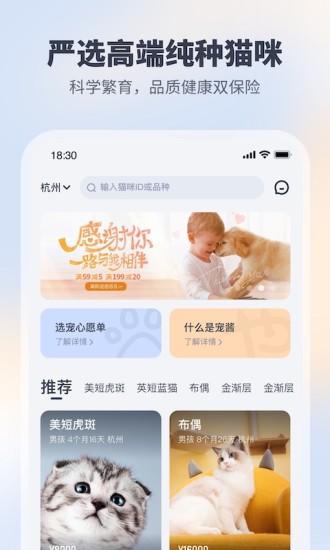 宠酱是一款专为铲屎官打造的养宠购宠一站式APP,在这里选购高端纯种猫咪,您将享受全方位安心保障。成为宠酱会员,更可解锁大牌口粮用品超值特价、同城医疗洗护网点超低折扣等专属权益!养宠购宠,您的不二之选!