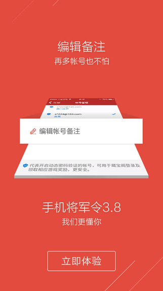网易将军令iPhone版是一款苹果手机用户用来绑定自己网易游戏通行证账号的应用软件,有了它你就不必担心盗号问题、装备被洗问题。同时将军令更新后支持动态密码及二维码登陆、账户余额查询、账号安全保障等功能,让你省心、放心玩游戏,生活因此而多姿多彩!