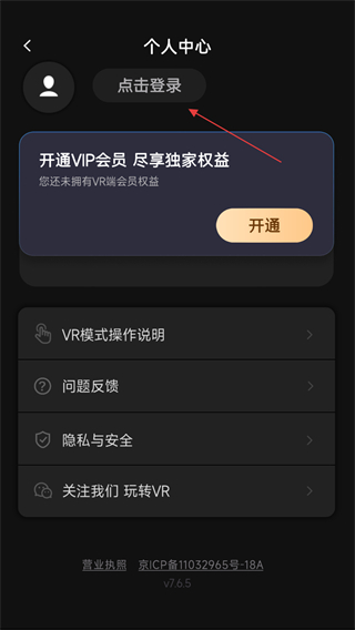 1、打开爱奇艺VR的APP,进入时点击右上方的位置。