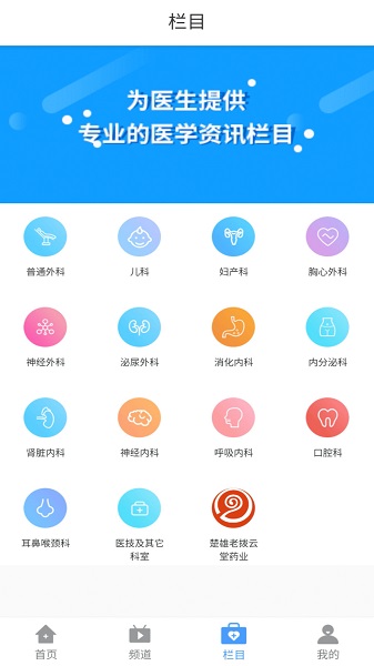 这里根据不同医生科室、不同关注面做了清晰的栏目划分,医生可以根据专业和兴趣的不同,来订阅不同栏目,每天都会有更权威更前沿的内容可供阅读。