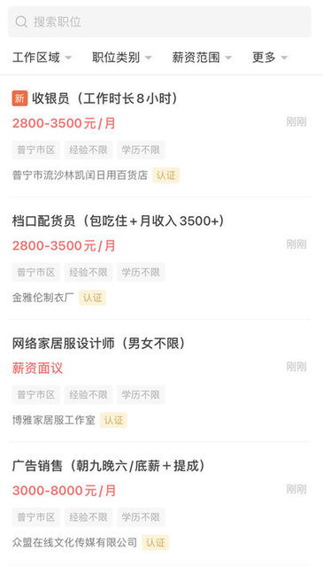普宁直聘app为广大求职者提供一个非常方便且专业的求职招聘平台,海量工作资源应有尽有能够很好的满足广大用户的不同需求,信息真实,安全性高让你可以放心进行选择,并且实时更新为你择优推荐,需要就赶紧来下载使用吧!