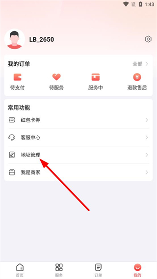 2、进入个人中心后,找到地址管理选项并点击,进入地址管理页面。