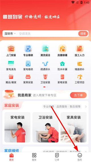1、在鲁班到家app底部,点击我的,进入个人中心页面。