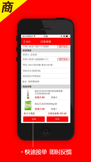 千红便利商家版是专为便利店、超市店主打造的服务软件。商家可以通过千红便利商家进行新品发布、商品管理、订单管理及促销消息发布,下单信息一目了然,不需要在用纸笔记录了,大大提高了商家的工作效率,手机接单、拣货、配送即可。