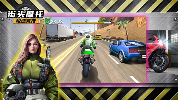 街头摩托极速竞技手游非常刺激的摩托竞技对战,丰富的赛道不同的主题背景给你全新的竞技体验,丰富的摩托等待玩家的收集,酷炫的角色等待玩家的解锁,3d真实的视角给你无限飙车的快感,喜欢的玩家就来下载试试吧!