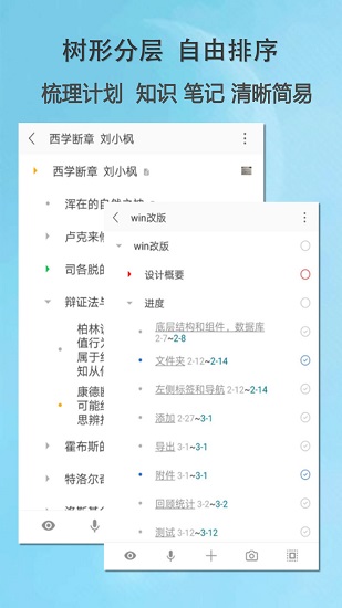 思事用于统一规划日程、记事、笔记。无限分层、自由排序的文件夹、树列表,更整洁、清晰、有序。用于工作、生活、学习日程、计划、笔记、灵感记录等,更简便,更有益。