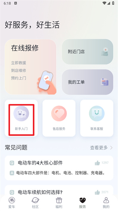 3、在服务栏之中还有【新手入门】教程可供用户们进行查看,以便于更好的进行车辆的使用;