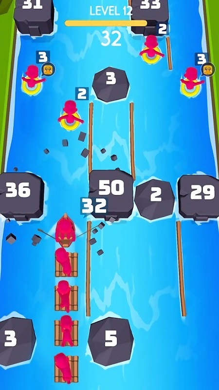 2、在沿途中拯救这些无辜的落水者,让你的木筏队伍更长;