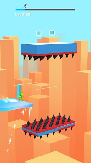 2、玩家需要躲避出现的障碍物,并不断的前进,到达终点解锁更多级别的挑战;