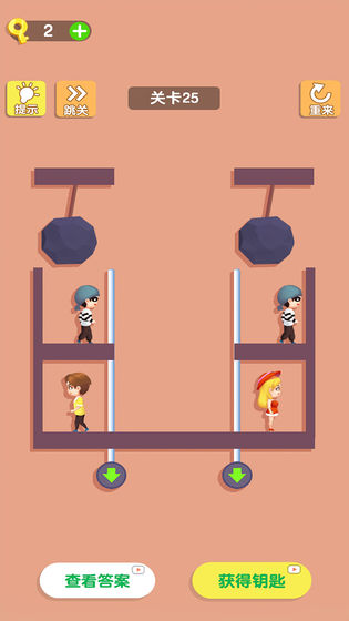 2、每一关都会给你一个场景,你必须用你的聪明才智才能解决问题。正确地解决这些有趣的挑战,女孩才能逃脱。