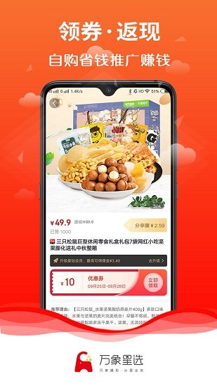 万象星选是一款购物领券返利app,商品优惠券繁多,每日更新多达全网百分之90的优惠券,还为用户提供优质的服务,让用户随时可在平台中购物下单,除此之外,还为用户提供了首单礼金、外卖优惠、电影购票以及特惠加油等服务,福利多多,快来下载吧!