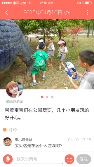 1.针对家庭,儿童邮局提供家庭圈SNS服务。针对园所,同样提供学校和家长的闭环社交服务。