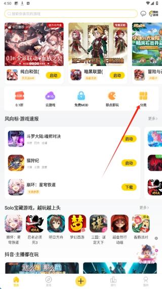 1、在游戏应用主界面,点击右侧分类按钮,进入游戏分类筛选页面,可按类型查找心仪游戏资源。