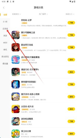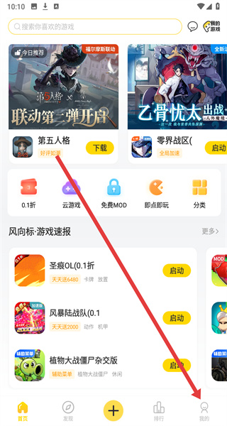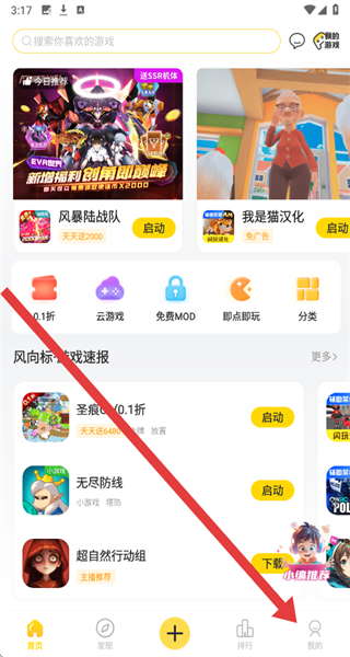 1、通过本站下载安装好软件后,点击进入软件,在首页我们可以看见有超多不同类型的游戏,有0.1折、即点即玩、云游戏等应有尽有;