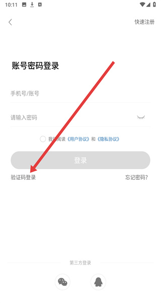 3、登录界面点击“验证码登录”,切换至验证码登录方式。