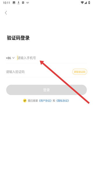 4、验证码登录页输入手机号,点击“获取验证码”,输入收到的验证码后完成登录。