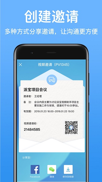 2、创建邀请,多种方式分享邀请,让沟通更方便;