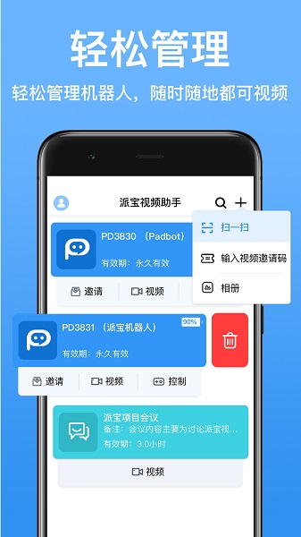 5、轻松管理,轻松管理机器人,随时随地都可视频。