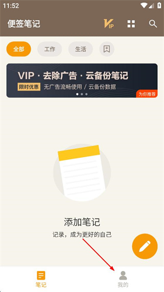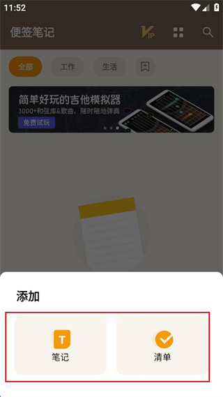 4、登录后,可选择添加笔记或清单,记录相关内容。