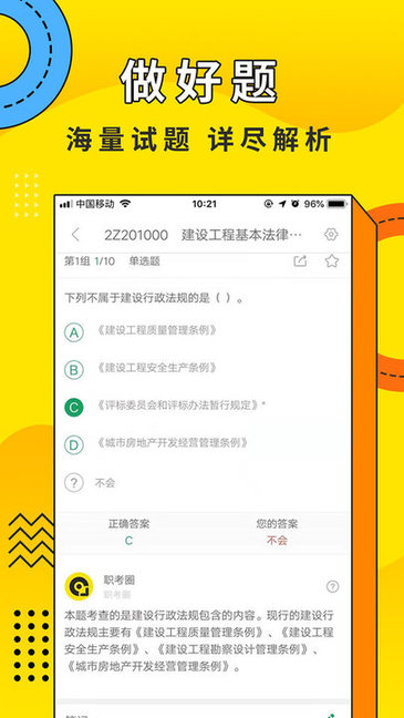 职考圈手机版专为广大需要备考执业证考试的用户提供一个更加专业的学习平台,海量精品课程推荐让你轻松入门开始学习,逐步推进强化学习能力,更加清晰的思路指导帮助你树立正确的学习方式,更好的迎接备考!